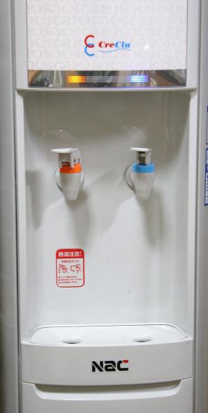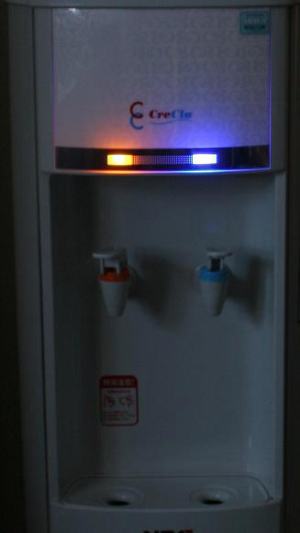 | クリクラのボトル交換には少し力が必要になります。妻は身長が156cmくらいですが、ボトル交換作業には苦労していたので最近は私の担当です。 二人で行えば楽勝ですが…。 また空ボトルを上へ引っ張りぬいてから新しいボトルを入れる時は多少力を下へかけないとうまくはまってくれません。しかしあまり力を入れすぎるとかなり大きな音がするので夜遅く交換を行う時は注意が必要です。 最近はボトルの入れ込むコツをマスターしましたのであまり音がたたないようになりました。 左がお湯。右が冷水。お湯側はロックを外さないと出ない仕組み(コックを一度上に上げてから奥へスライドさせて下へ降ろす)なので小さなお子さんがいるご家庭でも安心です。 ※オプションで冷水側もロック式に変更できるようです。 お湯の温度は75度〜85度くらいなので沸騰したお湯が必要なら更に熱する必要がありますが、カップ麺なら私にはこの温度で十分です。 そして夜の消灯後はオレンジとブルーのライトがキッチンを演出してくれています。 |